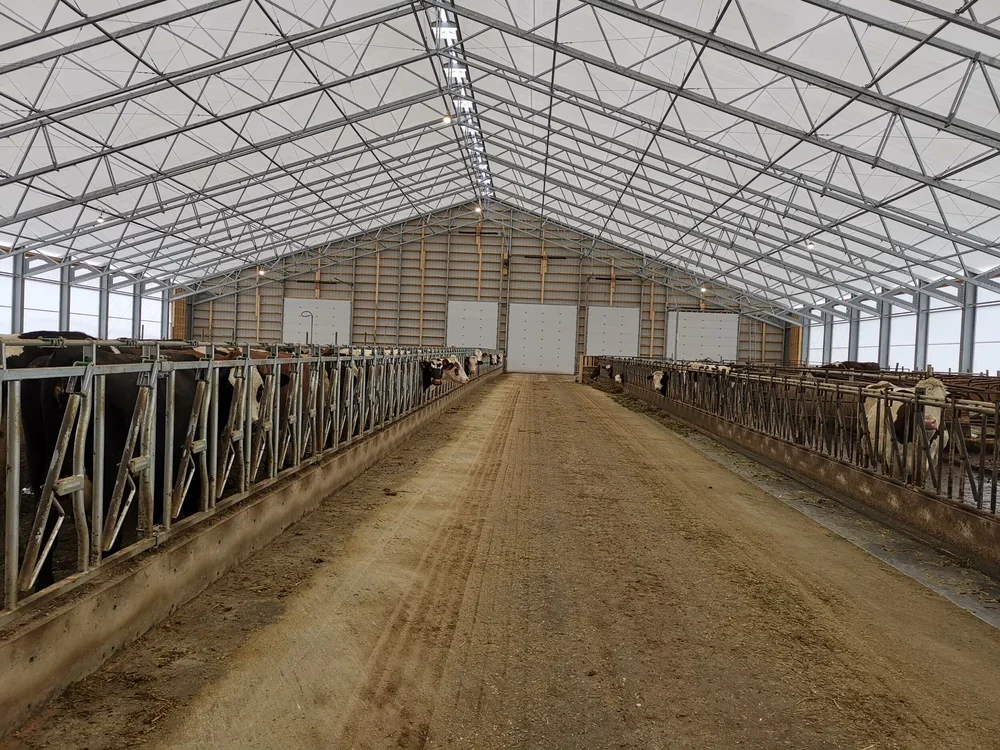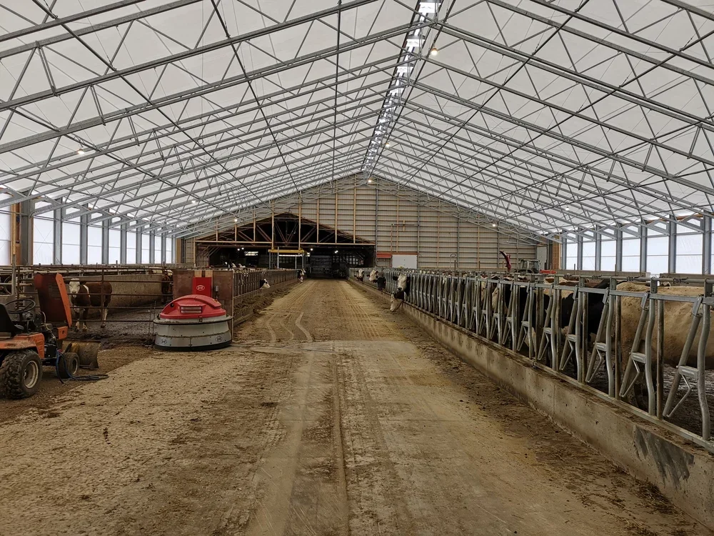 104’ x 218’ FABRIC ROOF DAIRY BARN Seeland Dairy - Enderby, BC Slide 1 Slide 1 (current slide) Slide 2 Slide 2 (current slide) Slide 3 Slide 3 (current slide)